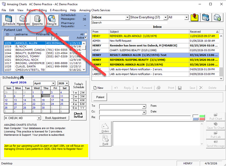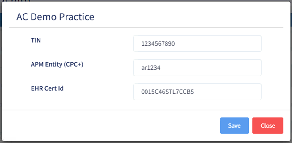 Make sure the EHR Cert ID is entered (go to www.amazingcharts.com for current certification information). Click “Save”