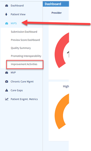 Select “MIPS” on the left side and Select “Improvement Activities” from the drop down menu