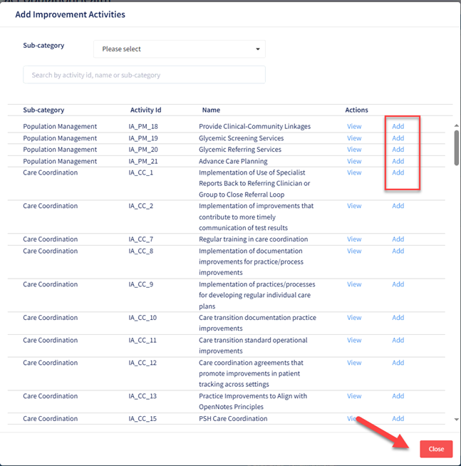 Scroll to find the activities you wish to attest to and select “Add”. Once you have added your activities, click “Close”