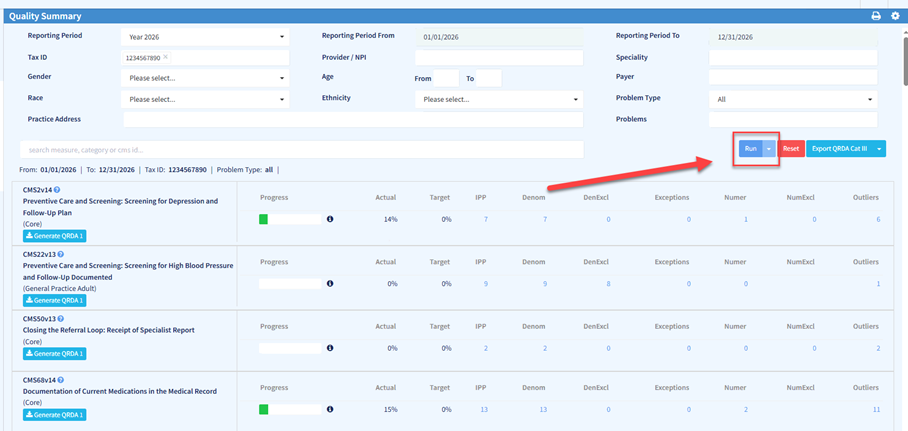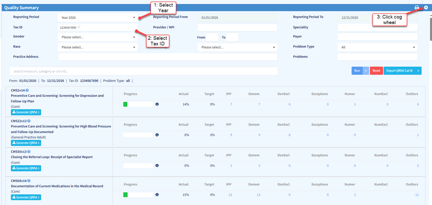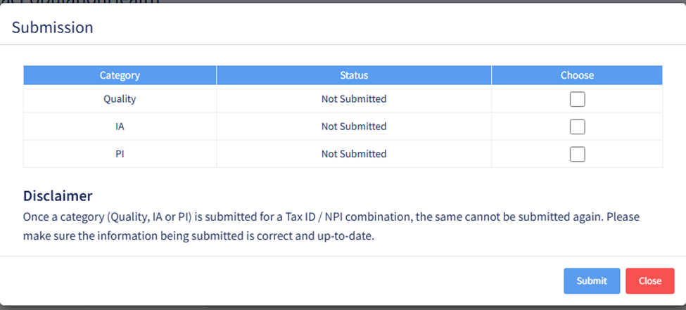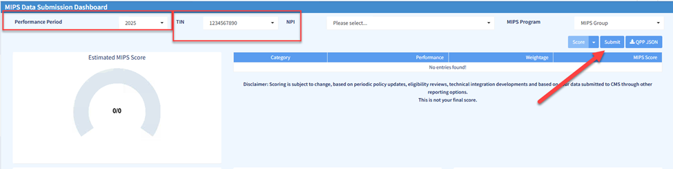Once logged in, select the Reporting Period and TIN. Then click “Submit”