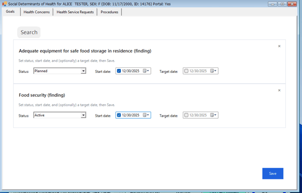 This enhancement supports USCDI V3 compliance by enabling clinicians to document SDOH-related goals in a structured way for interoperability and regulatory requirements.