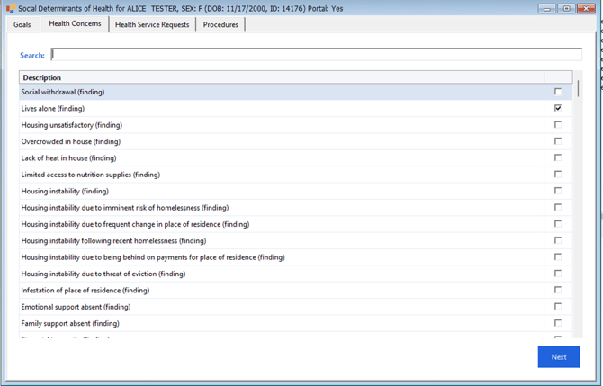 Document SDOH Health Concerns