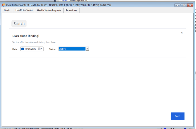This enhancement supports USCDI V3 compliance by enabling clinicians to document SDOH-related health concerns in a structured way for interoperability and regulatory requirements.