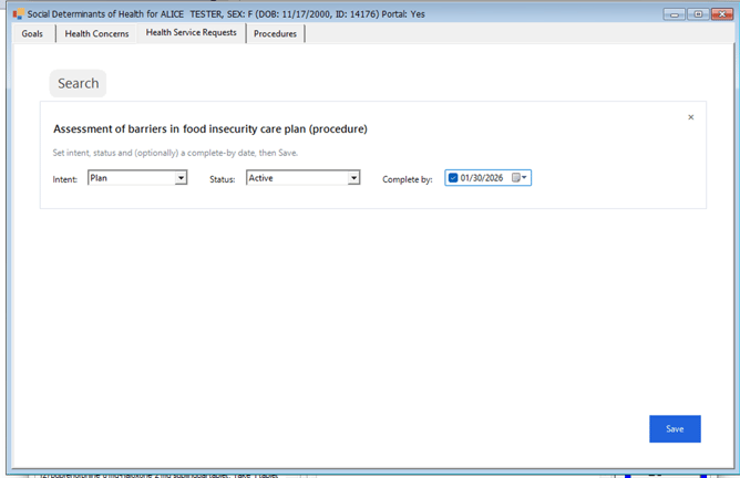 This enhancement supports USCDI V3 compliance by enabling clinicians to document SDOH-related health service requests in a structured way for interoperability and regulatory requirements.