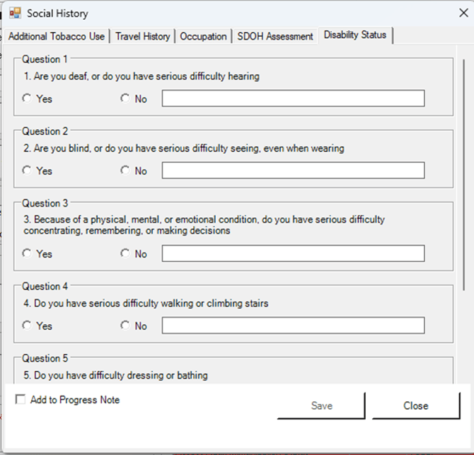 In the Social History section, a new Disability Status tab is available for clinicians to document this information.