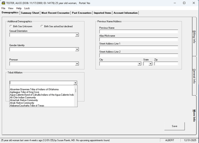 A new Tribal Affiliation option is available for clinicians to record this information.