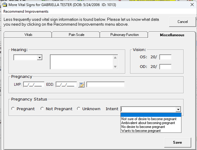 When this preference is active, the workflow allows clinicians to document pregnancy status during an encounter. This is part of the broader enhancements related to USCDI V3 compliance, which includes capturing additional health data elements like pregnancy status for interoperability and regulatory requirements.